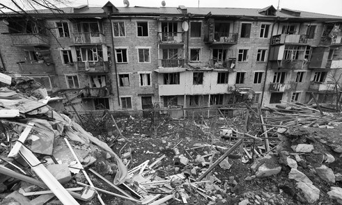 In the first few days after the end of the war between Armenia and Azerbaijan in Artsakh/Nagorno-Karabakh, it was difficult to find many people in the streets of Stepanakert, the capital of the Republic. However, finding houses and non-military buildings destroyed by Azeri bombs was quite easy. These photos show just a few examples of the level of destruction that the Azeri military directed daily at civilian targets and the Armenian residents in Stepanakert.